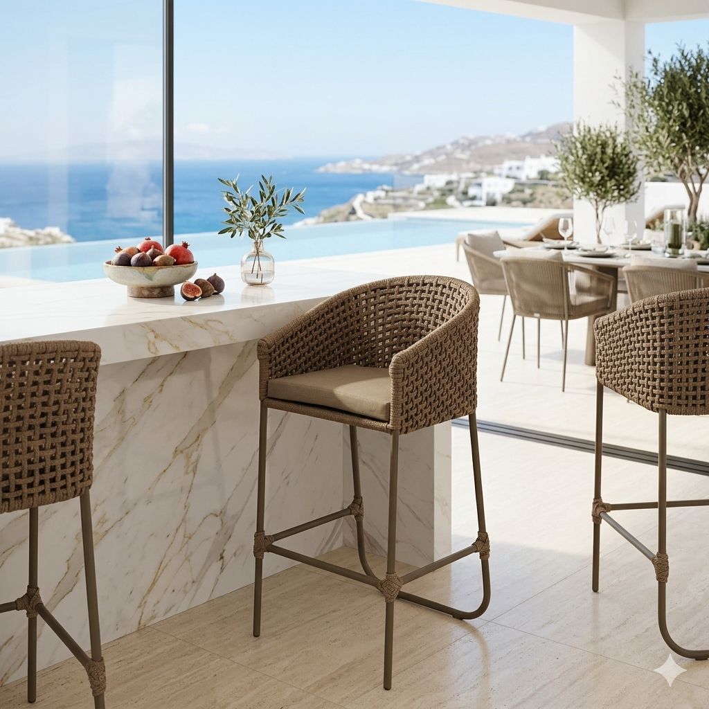 A Banqueta Ubatuba é uma mistura de conforto e elegância, projetada para fazer de seu abiente, um ambiente charmoso e fino. Produzido com alumínio extruturado e revestido em corda náutica naval extruturada e estofado em tecido impermeável, esta cadeira oferece um toque de modernidade e durabilidade que somente a Vilaça Móveis tem! Obs.: Almofada Decorativa Vendida Separadamente Design Versátil e Acolhedor Com estofado no assento, esta Banqueta proporciona um conforto incomparável, ideal para um belo balcão ou bistrô, que você encontra também aqui na Vilaça Móveis, perfeito para relaxar e viver momentos incríveis em sua área gourmet, varanda, junto à piscina, no jardim ou mesmo em sua área interna. Seu design versátil se adapta perfeitamente a diferentes ambientes, trazendo um toque de elegância aonde quer que esteja.