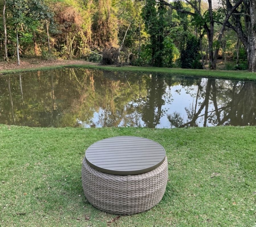 Mesa de Centro para ambiente externo, estrutura em alumínio pintado com pintura eletrostática, trama em Fibra Sintática com matéria prima de alta qualidade. Ideal para ser utilizada em sua varanda, piscina, jardim ou até mesmo sua área interna.