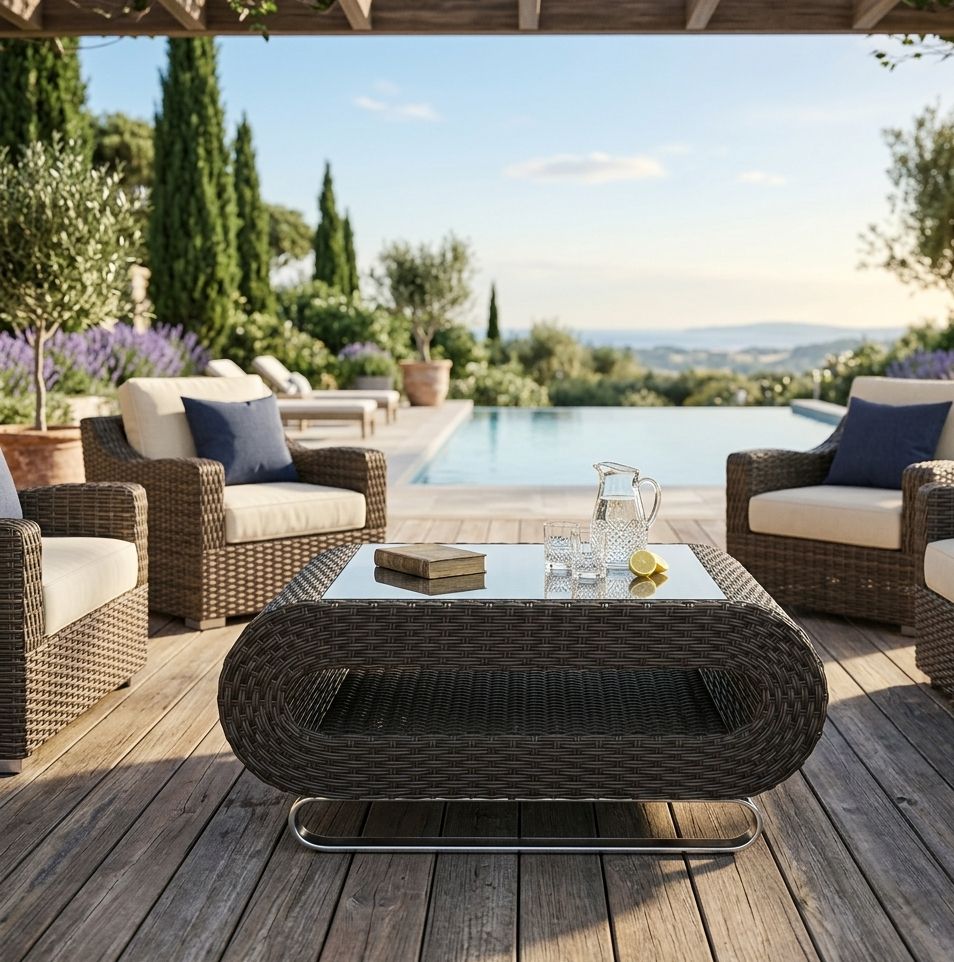 Mesa de Centro Califórnia em Fibra Sintética com Vidro