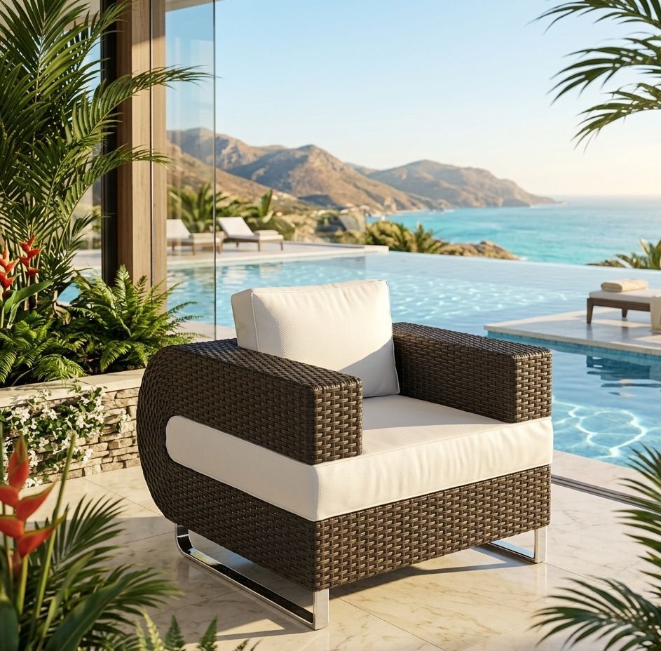 Poltrona para ambiente externo, estrutura em alumínio pintado com pintura eletrostática, trama em Fibra Sintática com matéria prima de alta qualidade, Almofadas removíveis em tecido impermeável oferecendo grande conforto ao sentar. Ideal para ser utilizada em sua varanda, piscina, jardim ou até mesmo sua área interna.CUIDADOS:Corda Náutica: Para limpeza das cordas, não utilizar produtos abrasivos, como álcool, solventes, nem palha de aço ou materiais semelhantes. Não utilizar lavadora com jato de pressão. Utilizar sabão neutro com uma esponja macia e pressão da água baixa, quando o móvel se encontrar em lugar fechado, úmido e com pouca circulação de ar, por exemplo: piscina aquecida ou sauna, deverá ser feita a limpeza mensalmente, para evitar a proliferação de fungos e mofo.Alumínio polido: Para manter o brilho, utilize cera automotiva, tomando cuidado para não aplicar sobre as fibras, cordas e tecido. Aplicar somente no produto seco e limpo.Tecidos: Para os tecidos, limpar diariamente com pano branco umedecido em água, na temperatura ambiente e secar. Eliminar sujeiras acidentais com pano limpo, esponjado ou papel absorvente, sem comprimir para dentro do tecido. Após a limpeza, não armazenar em local úmido. Não utilizar produtos abrasivos, como escovas com cerdas, jatos de água, esponjas abrasivas ou produtos químicos (alcalinos e clorados), tais como: detergentes em pó, solventes, cloro e outros. |