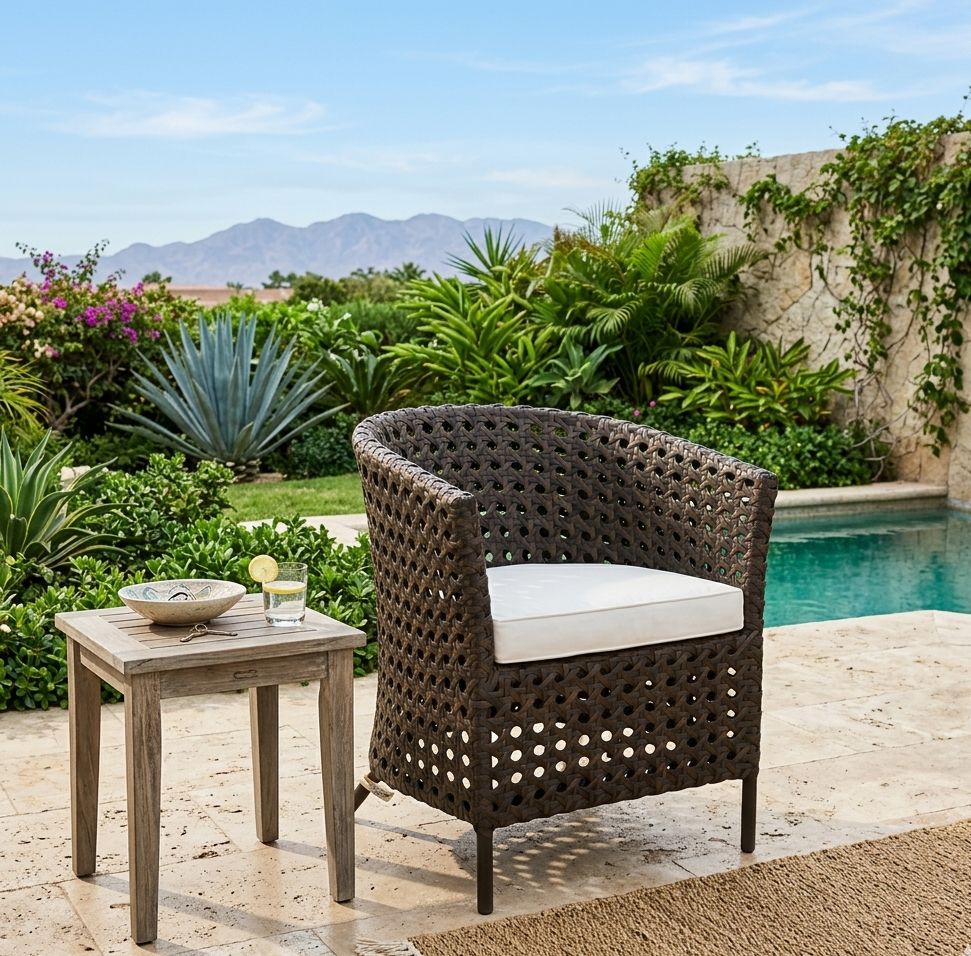 Poltrona para ambiente externo, estrutura em alumínio pintado com pintura eletrostática, trama em Fibra Sintática com matéria prima de alta qualidade, Almofadas removíveis em tecido impermeável oferecendo grande conforto ao sentar. Ideal para ser utilizada em sua varanda, piscina, jardim ou até mesmo sua área interna.CUIDADOS:Corda Náutica: Para limpeza das cordas, não utilizar produtos abrasivos, como álcool, solventes, nem palha de aço ou materiais semelhantes. Não utilizar lavadora com jato de pressão. Utilizar sabão neutro com uma esponja macia e pressão da água baixa, quando o móvel se encontrar em lugar fechado, úmido e com pouca circulação de ar, por exemplo: piscina aquecida ou sauna, deverá ser feita a limpeza mensalmente, para evitar a proliferação de fungos e mofo.Alumínio polido: Para manter o brilho, utilize cera automotiva, tomando cuidado para não aplicar sobre as fibras, cordas e tecido. Aplicar somente no produto seco e limpo.Tecidos: Para os tecidos, limpar diariamente com pano branco umedecido em água, na temperatura ambiente e secar. Eliminar sujeiras acidentais com pano limpo, esponjado ou papel absorvente, sem comprimir para dentro do tecido. Após a limpeza, não armazenar em local úmido. Não utilizar produtos abrasivos, como escovas com cerdas, jatos de água, esponjas abrasivas ou produtos químicos (alcalinos e clorados), tais como: detergentes em pó, solventes, cloro e outros. |