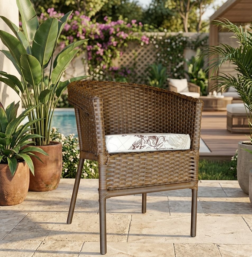 Poltrona para ambiente externo, estrutura em alumínio pintado com pintura eletrostática, trama em Fibra Sintática com matéria prima de alta qualidade, Almofadas removíveis em tecido impermeável oferecendo grande conforto ao sentar. Ideal para ser utilizada em sua varanda, piscina, jardim ou até mesmo sua área interna.CUIDADOS:Corda Náutica: Para limpeza das cordas, não utilizar produtos abrasivos, como álcool, solventes, nem palha de aço ou materiais semelhantes. Não utilizar lavadora com jato de pressão. Utilizar sabão neutro com uma esponja macia e pressão da água baixa, quando o móvel se encontrar em lugar fechado, úmido e com pouca circulação de ar, por exemplo: piscina aquecida ou sauna, deverá ser feita a limpeza mensalmente, para evitar a proliferação de fungos e mofo.Alumínio polido: Para manter o brilho, utilize cera automotiva, tomando cuidado para não aplicar sobre as fibras, cordas e tecido. Aplicar somente no produto seco e limpo.Tecidos: Para os tecidos, limpar diariamente com pano branco umedecido em água, na temperatura ambiente e secar. Eliminar sujeiras acidentais com pano limpo, esponjado ou papel absorvente, sem comprimir para dentro do tecido. Após a limpeza, não armazenar em local úmido. Não utilizar produtos abrasivos, como escovas com cerdas, jatos de água, esponjas abrasivas ou produtos químicos (alcalinos e clorados), tais como: detergentes em pó, solventes, cloro e outros. |