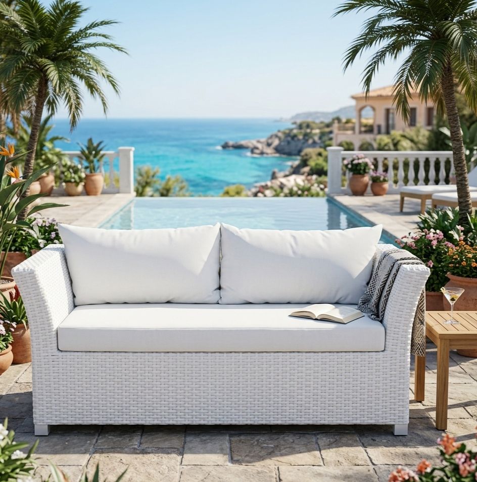 Sofá para ambiente externo, estrutura em alumínio pintado com pintura eletrostática, trama em Fibra Sintática com matéria prima de alta qualidade, Almofadas removíveis em tecido impermeável oferecendo grande conforto ao sentar. Ideal para ser utilizada em sua varanda, piscina, jardim ou até mesmo sua área interna.CUIDADOS:Corda Náutica: Para limpeza das cordas, não utilizar produtos abrasivos, como álcool, solventes, nem palha de aço ou materiais semelhantes. Não utilizar lavadora com jato de pressão. Utilizar sabão neutro com uma esponja macia e pressão da água baixa, quando o móvel se encontrar em lugar fechado, úmido e com pouca circulação de ar, por exemplo: piscina aquecida ou sauna, deverá ser feita a limpeza mensalmente, para evitar a proliferação de fungos e mofo.Alumínio polido: Para manter o brilho, utilize cera automotiva, tomando cuidado para não aplicar sobre as fibras, cordas e tecido. Aplicar somente no produto seco e limpo.Tecidos: Para os tecidos, limpar diariamente com pano branco umedecido em água, na temperatura ambiente e secar. Eliminar sujeiras acidentais com pano limpo, esponjado ou papel absorvente, sem comprimir para dentro do tecido. Após a limpeza, não armazenar em local úmido. Não utilizar produtos abrasivos, como escovas com cerdas, jatos de água, esponjas abrasivas ou produtos químicos (alcalinos e clorados), tais como: detergentes em pó, solventes, cloro e outros. |