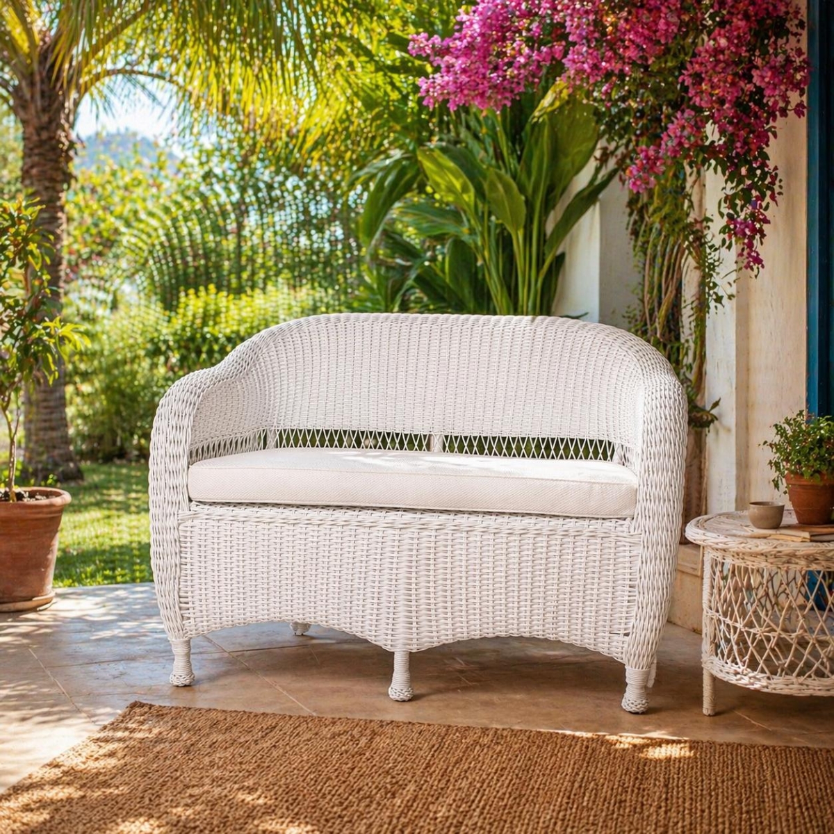 Sofá para ambiente externo, estrutura em alumínio pintado com pintura eletrostática, trama em Fibra Sintática com matéria prima de alta qualidade, Almofadas removíveis em tecido impermeável oferecendo grande conforto ao sentar. Ideal para ser utilizada em sua varanda, piscina, jardim ou até mesmo sua área interna.CUIDADOS:Corda Náutica: Para limpeza das cordas, não utilizar produtos abrasivos, como álcool, solventes, nem palha de aço ou materiais semelhantes. Não utilizar lavadora com jato de pressão. Utilizar sabão neutro com uma esponja macia e pressão da água baixa, quando o móvel se encontrar em lugar fechado, úmido e com pouca circulação de ar, por exemplo: piscina aquecida ou sauna, deverá ser feita a limpeza mensalmente, para evitar a proliferação de fungos e mofo.Alumínio polido: Para manter o brilho, utilize cera automotiva, tomando cuidado para não aplicar sobre as fibras, cordas e tecido. Aplicar somente no produto seco e limpo.Tecidos: Para os tecidos, limpar diariamente com pano branco umedecido em água, na temperatura ambiente e secar. Eliminar sujeiras acidentais com pano limpo, esponjado ou papel absorvente, sem comprimir para dentro do tecido. Após a limpeza, não armazenar em local úmido. Não utilizar produtos abrasivos, como escovas com cerdas, jatos de água, esponjas abrasivas ou produtos químicos (alcalinos e clorados), tais como: detergentes em pó, solventes, cloro e outros. |