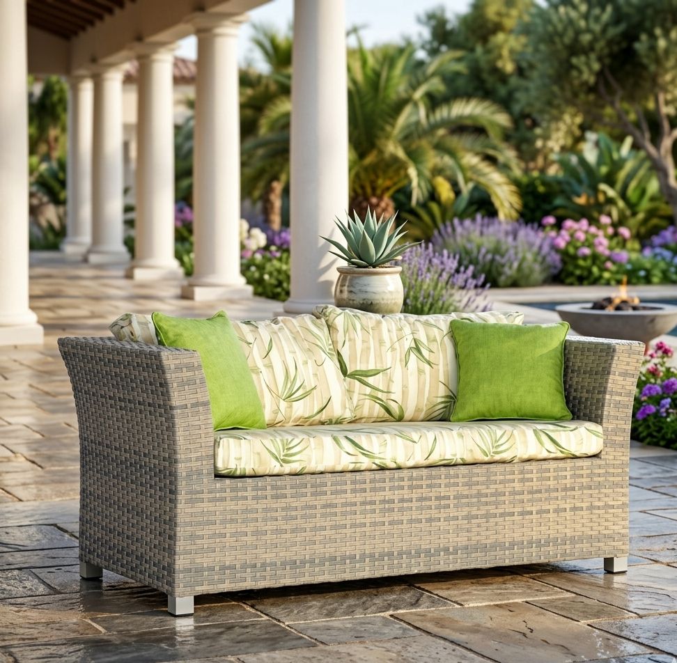 Sofá para ambiente externo, estrutura em alumínio pintado com pintura eletrostática, trama em Fibra Sintática com matéria prima de alta qualidade, Almofadas removíveis em tecido impermeável oferecendo grande conforto ao sentar. Ideal para ser utilizada em sua varanda, piscina, jardim ou até mesmo sua área interna.CUIDADOS:Corda Náutica: Para limpeza das cordas, não utilizar produtos abrasivos, como álcool, solventes, nem palha de aço ou materiais semelhantes. Não utilizar lavadora com jato de pressão. Utilizar sabão neutro com uma esponja macia e pressão da água baixa, quando o móvel se encontrar em lugar fechado, úmido e com pouca circulação de ar, por exemplo: piscina aquecida ou sauna, deverá ser feita a limpeza mensalmente, para evitar a proliferação de fungos e mofo.Alumínio polido: Para manter o brilho, utilize cera automotiva, tomando cuidado para não aplicar sobre as fibras, cordas e tecido. Aplicar somente no produto seco e limpo.Tecidos: Para os tecidos, limpar diariamente com pano branco umedecido em água, na temperatura ambiente e secar. Eliminar sujeiras acidentais com pano limpo, esponjado ou papel absorvente, sem comprimir para dentro do tecido. Após a limpeza, não armazenar em local úmido. Não utilizar produtos abrasivos, como escovas com cerdas, jatos de água, esponjas abrasivas ou produtos químicos (alcalinos e clorados), tais como: detergentes em pó, solventes, cloro e outros. |