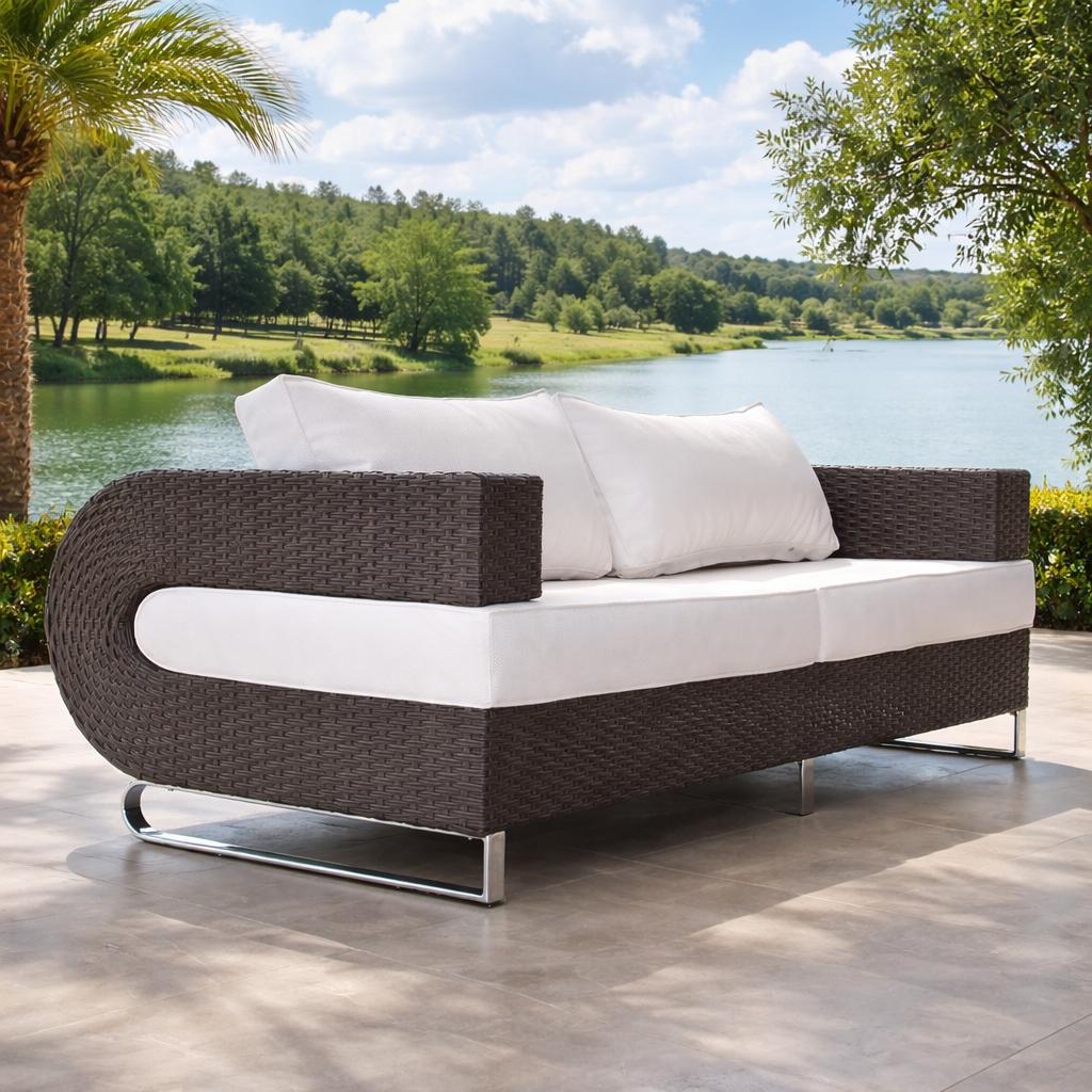 Sofá para ambiente externo, estrutura em alumínio pintado com pintura eletrostática, trama em Fibra Sintática com matéria prima de alta qualidade, Almofadas removíveis em tecido impermeável oferecendo grande conforto ao sentar. Ideal para ser utilizada em sua varanda, piscina, jardim ou até mesmo sua área interna.CUIDADOS:Corda Náutica: Para limpeza das cordas, não utilizar produtos abrasivos, como álcool, solventes, nem palha de aço ou materiais semelhantes. Não utilizar lavadora com jato de pressão. Utilizar sabão neutro com uma esponja macia e pressão da água baixa, quando o móvel se encontrar em lugar fechado, úmido e com pouca circulação de ar, por exemplo: piscina aquecida ou sauna, deverá ser feita a limpeza mensalmente, para evitar a proliferação de fungos e mofo.Alumínio polido: Para manter o brilho, utilize cera automotiva, tomando cuidado para não aplicar sobre as fibras, cordas e tecido. Aplicar somente no produto seco e limpo.Tecidos: Para os tecidos, limpar diariamente com pano branco umedecido em água, na temperatura ambiente e secar. Eliminar sujeiras acidentais com pano limpo, esponjado ou papel absorvente, sem comprimir para dentro do tecido. Após a limpeza, não armazenar em local úmido. Não utilizar produtos abrasivos, como escovas com cerdas, jatos de água, esponjas abrasivas ou produtos químicos (alcalinos e clorados), tais como: detergentes em pó, solventes, cloro e outros. |
